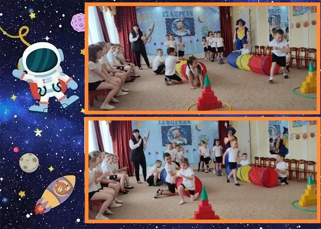 Ребята исследовали далекие галактики и знакомились с особенностями планет Солнечной системы. Особый восторг у ребят вызвали подвижные игры и «космическая» зарядка. Ребята с удовольствием участвовали в эстафетах: «Построй ракету», где девочки и мальчики проявили свои навыки конструирования; «На старт», «Большое космическое путешествие», «Звёздный дождь», дыхательная гимнастика «Надуй шарик». Дети пели песни, читали стихи, отгадывали загадки.